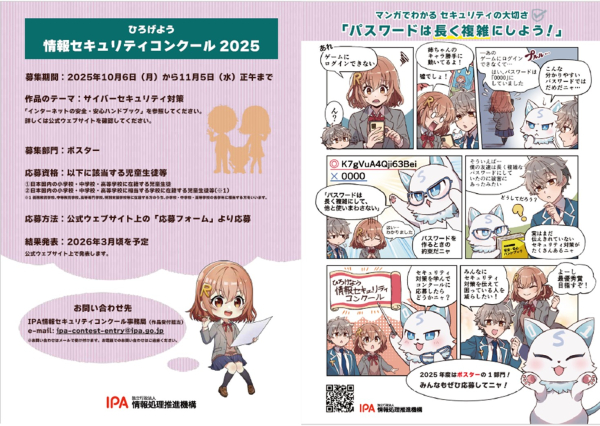 IPA(独立行政法人)情報処理推進機構において、「情報セキュリティ コンクール2025 ポスター部門」が募集開始となりました。