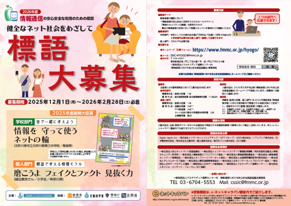 「情報通信における安心安全推進協議会」が行う『情報通信の安心安全な利用のための標語』を募集いたします!